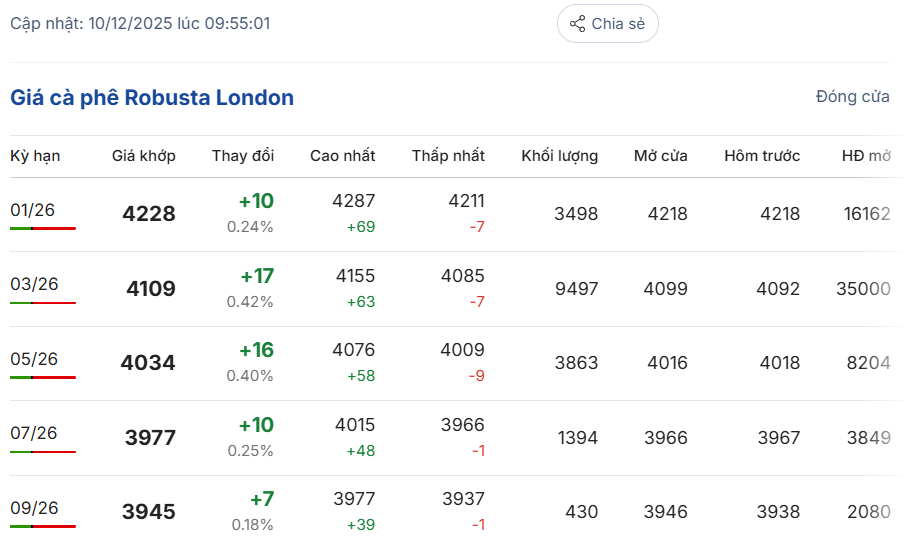 XEM THÊM: Giá cà phê hôm nay 9/12/2025